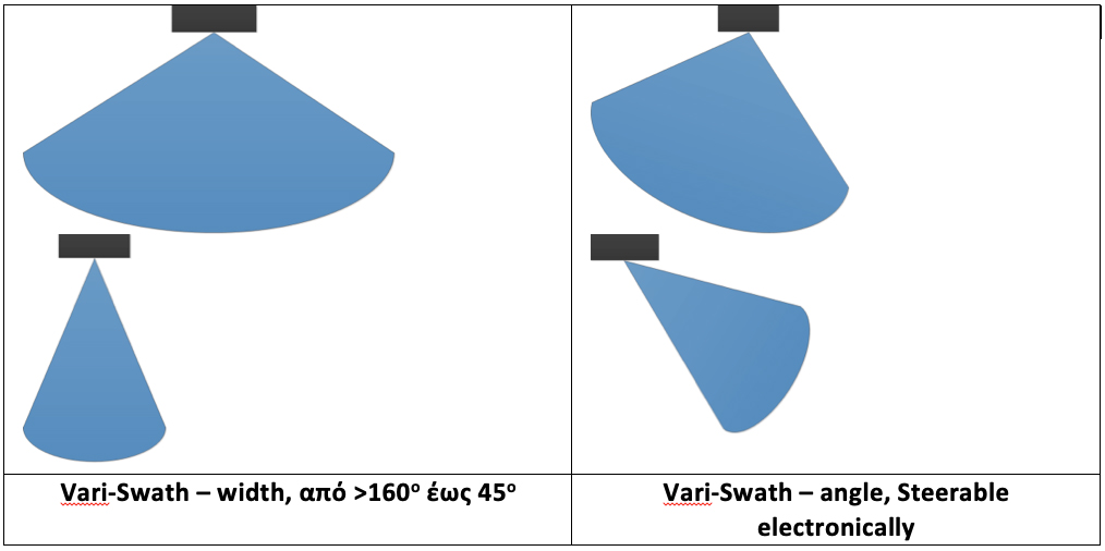 Το χαρακτηριστικό αυτό των MBES επιτρέπει την βέλτιστη σάρωση χαντακιών στο πυθμένα, αγωγών και αντικειμένων που βρίσκονται παράλληλα στο πλάι της γραμμής πλεύσης, πχ. κρηπιδότοιχοι.